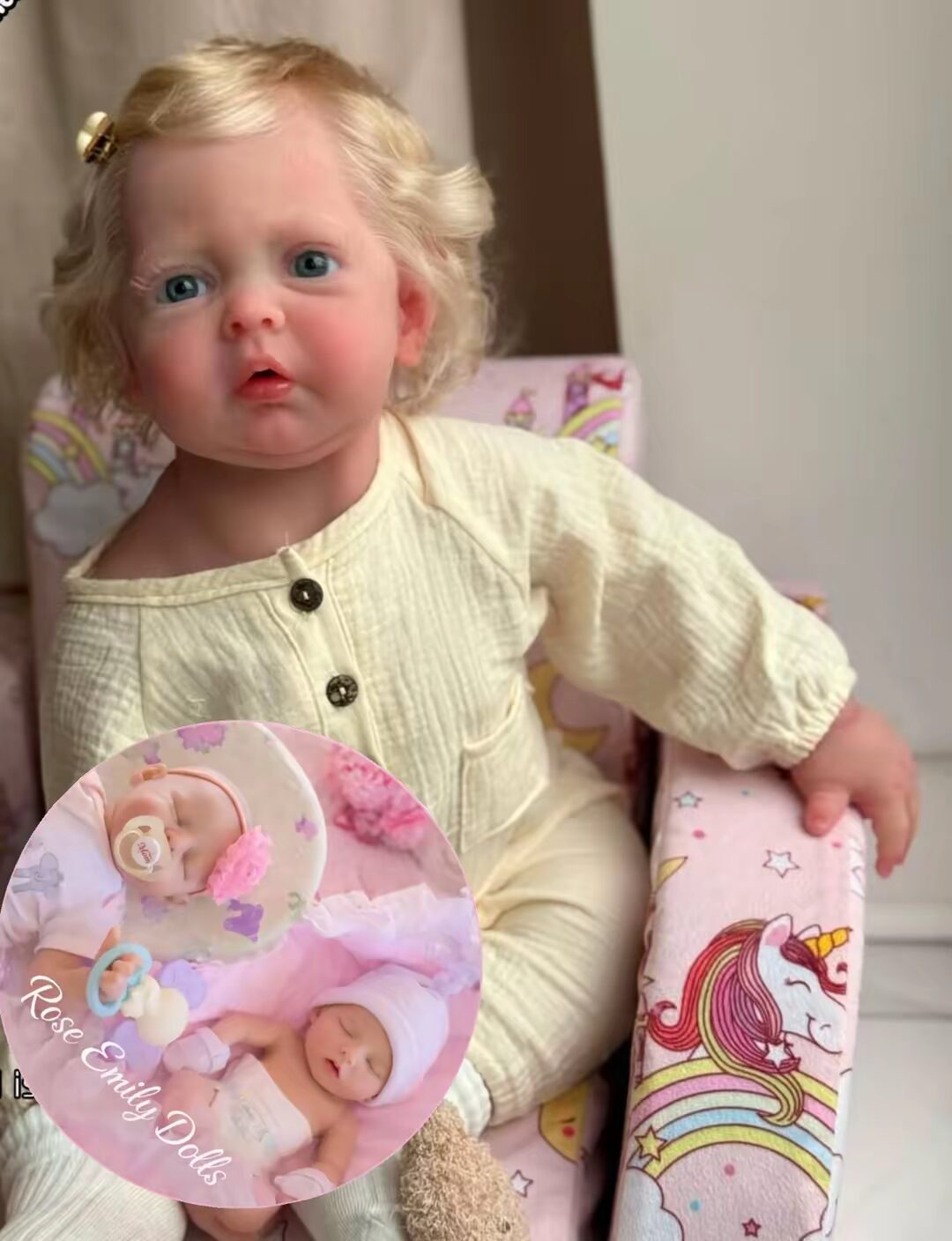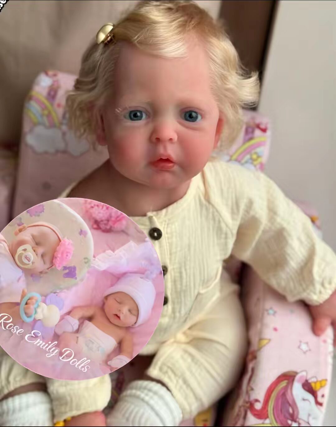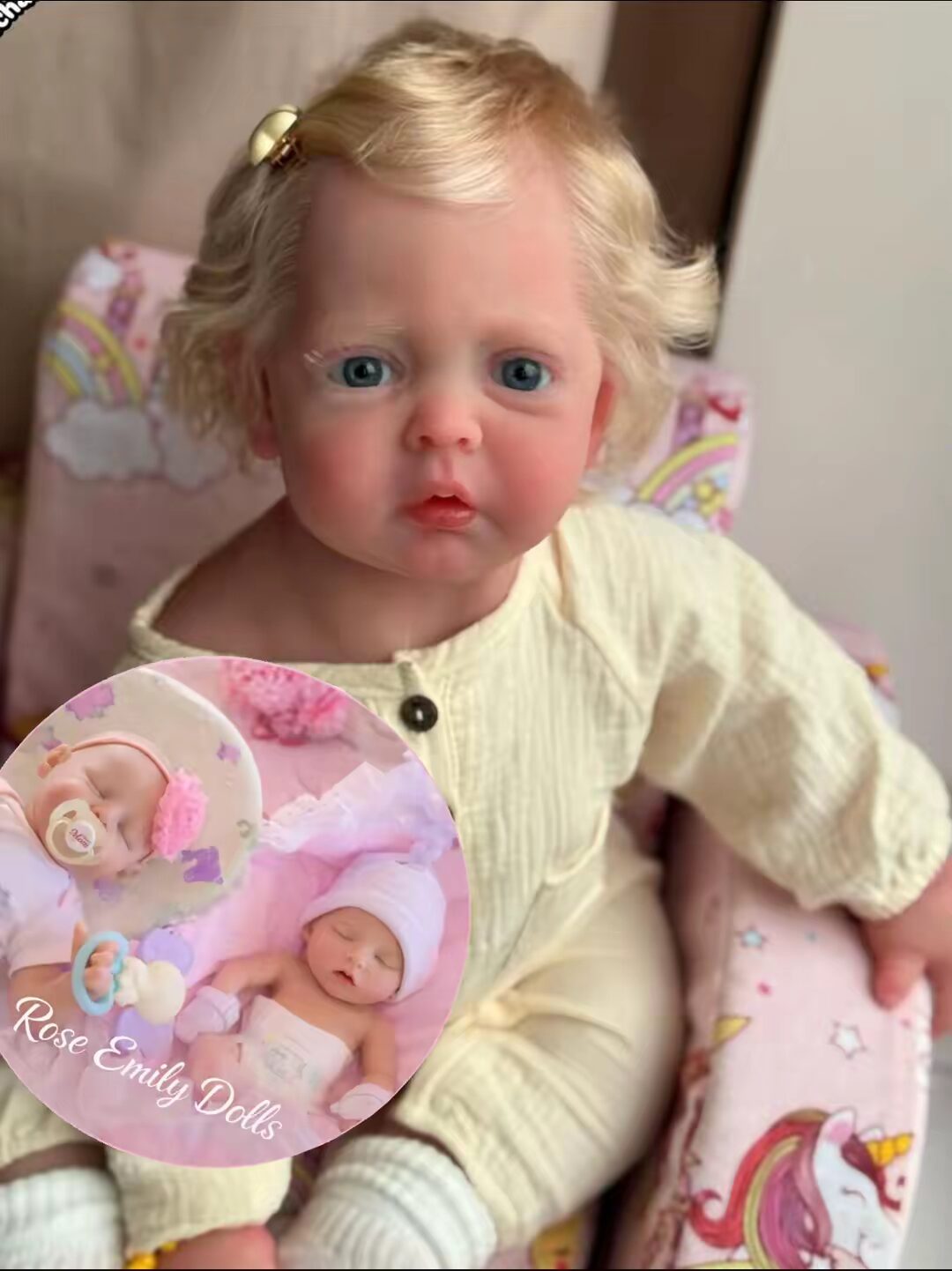 - She has beautiful, soft golden hair that adds to her realistic charm.